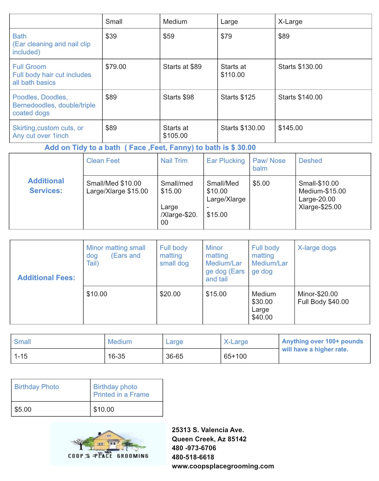 Any specialty cut, scissoring, or breed specific request - Please ask for pricing details